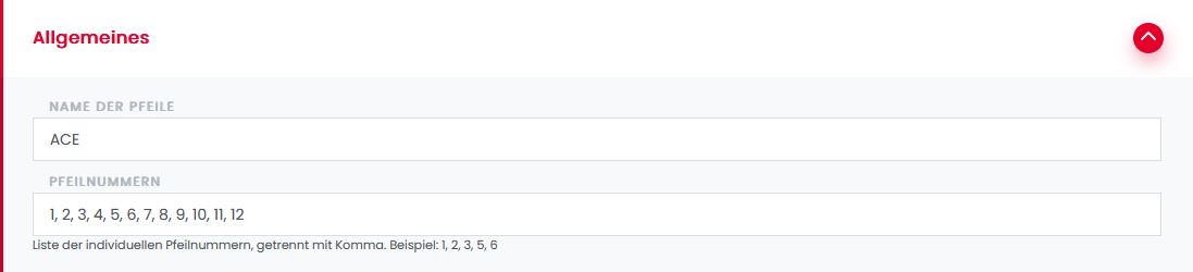 Zunächst kannst du im Abschnitt über das verwendete Material in deinem Serverkonto ( Meine Pfeile ) die Nummern angeben, mit denen du deine Pfeilschäfte beschriftet hast: