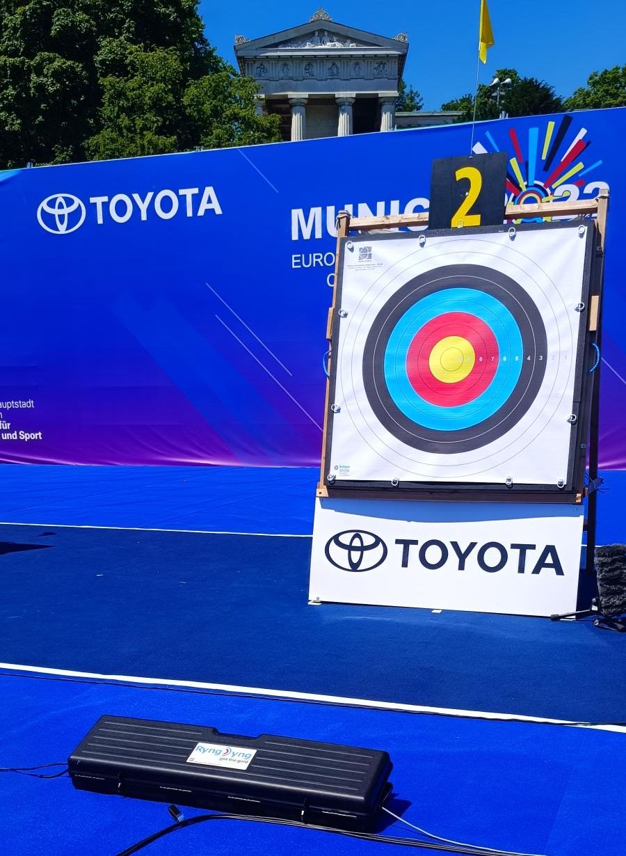 For the first time, we had a booth with live demonstration at an important international event: The European Championship Munich 2022. There was a huge interest in RyngDyng among the coaches and the archers. As usual, RyngDyng did convince through it's performance and accuracy. The finals have been scored using RyngDyng and all results were displayed within 1 second on the large screens and broadcasted via TV.