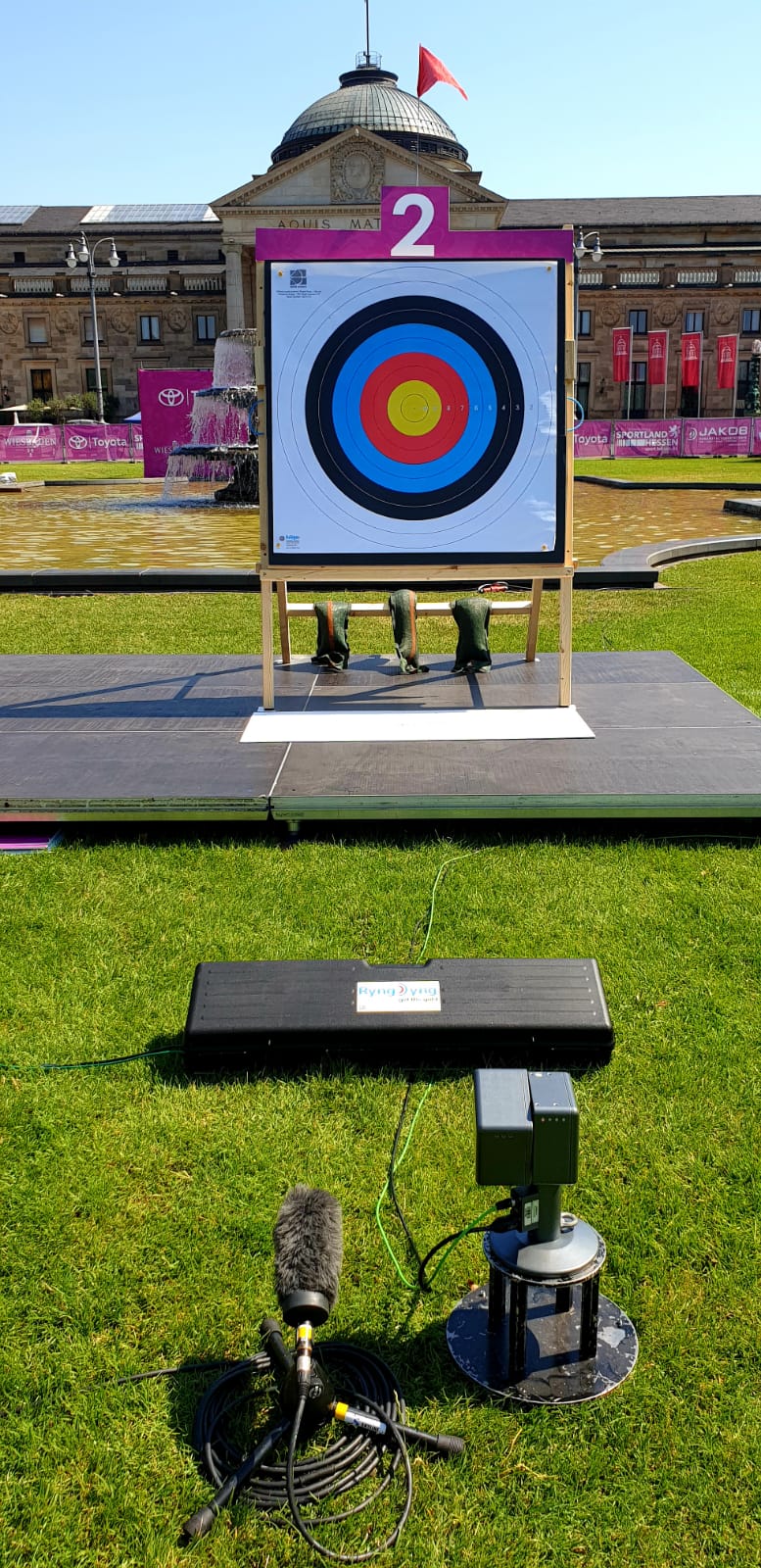 From July 31 to August 6, 2023, the Archery World Championships took place in Berlin on Olympiaplatz. As always, all finals (from 1/4 to gold) were automatically scored with RyngDyng. Matteo - the WA's Head of Technology - told us that all arrows were accurately scored by RyngDyng. We have achieved a capture rate of >99% with the RD720. Even the massive rain and the sun in the backlight (from 6 p.m.) were mastered.
