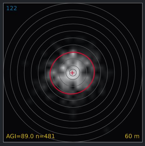 The best set of arrows is numbers 1, 2, 4, 6, 8, 11. The AGI that would have been achieved when using only those 6 arrows is 91.1. This corresponds to a much more narrow grouping compared to all 12 arrows (89.0).