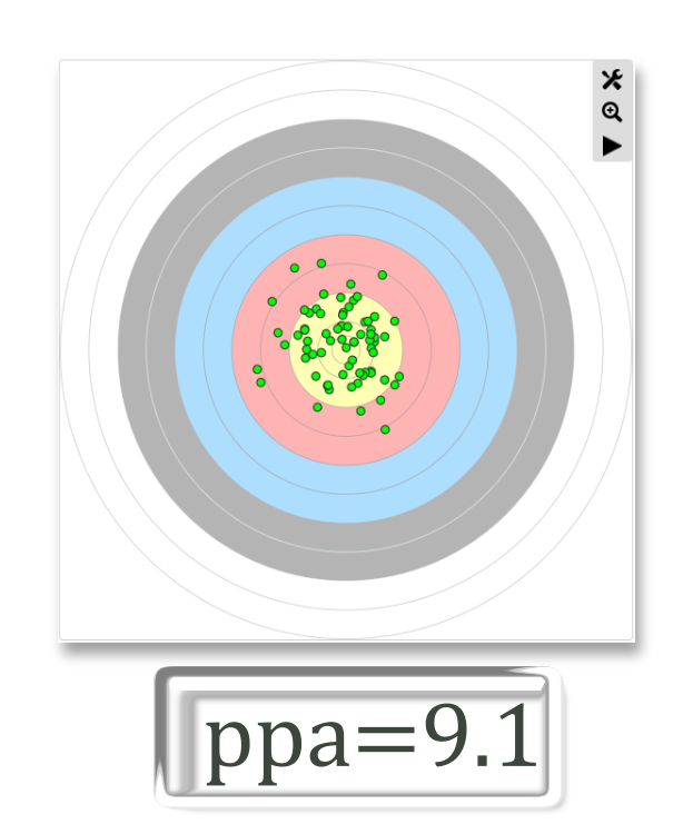 The number points per arrow is especially useful for you when you are preparing for a tournament and want to simulate the situation in your personal training. Furthermore, it can be used to track your performance over a longer period of time.