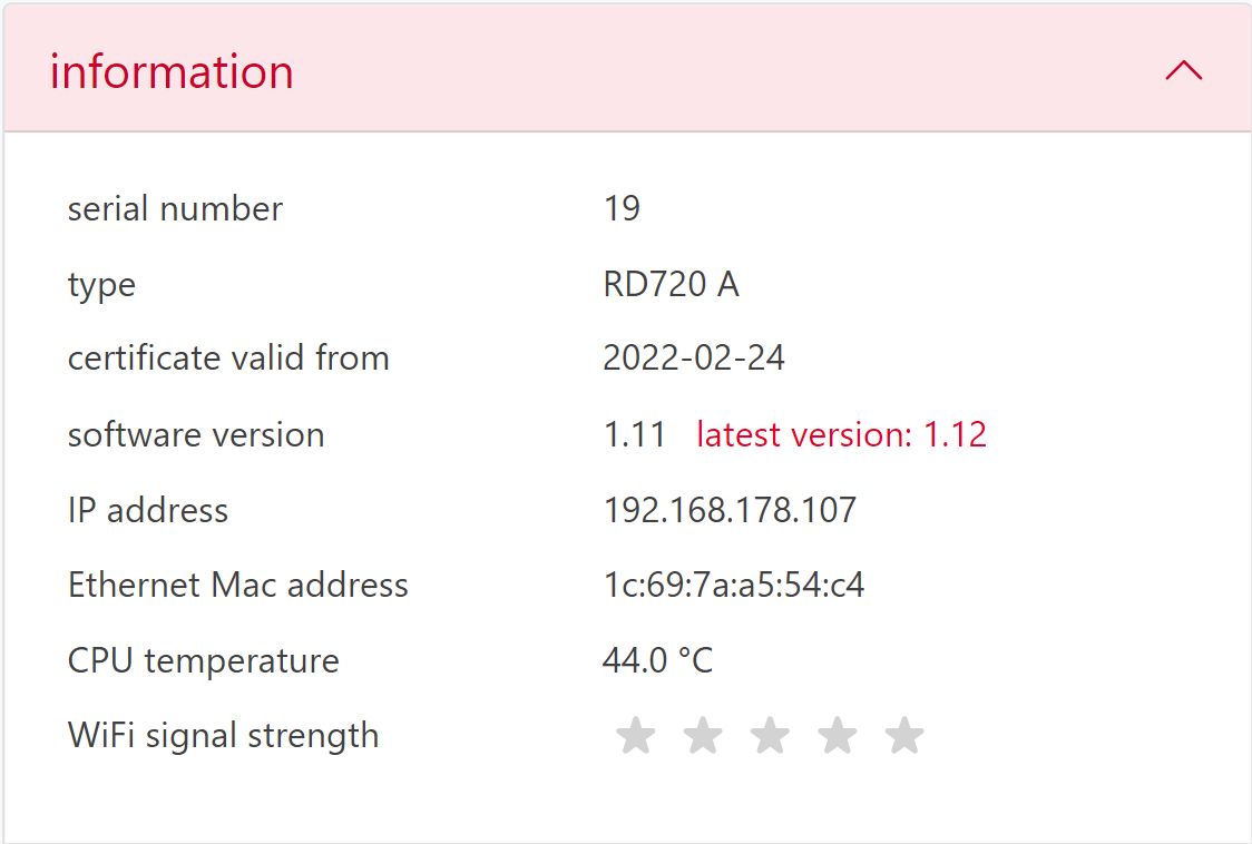 If a new software version is available for RyngDyng, this is also displayed (picture on the right). In this case, the router should be connected to the Internet so that RyngDyng can automatically obtain the new software when it restarts.