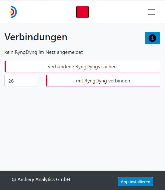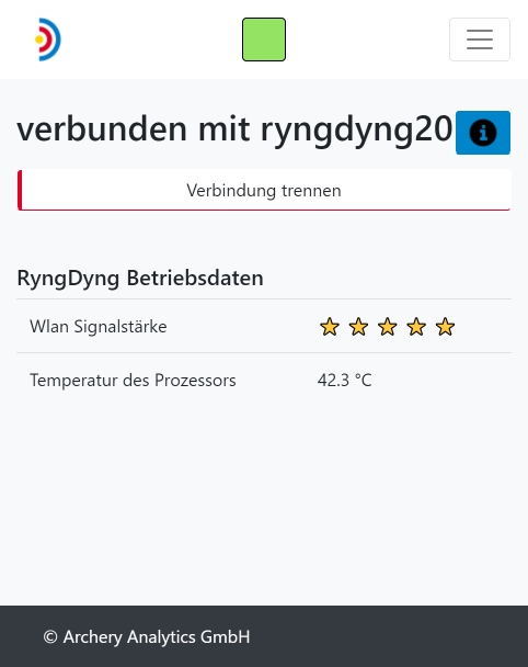 Nach der erfolgreichen Verbindung mit einem RyngDyng wird die Verbindungsanzeige oben grün und es erscheint eine Statusmeldung (rechtes Bild)