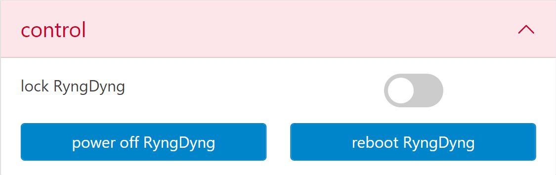The commands for locking, switching off and restarting RyngDyng can be found under the heading control: