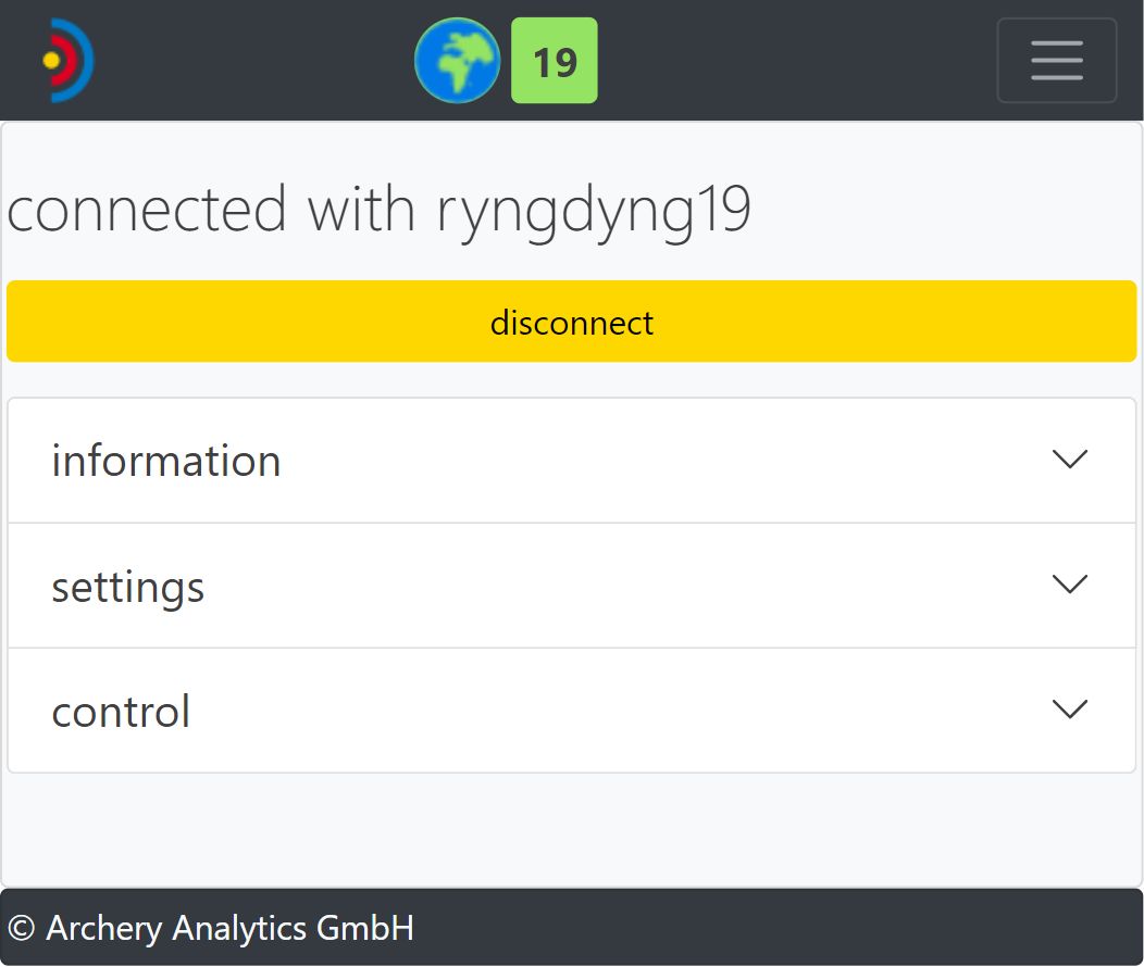 Not all of these features are available in all versions. It depends on the user's permissions which functions are enabled. For example, spectators can use the RyngDyng App to watch a tournament live. However, they cannot control the system. Archers with an Archery Analytics account can use the RyngDyng App to evaluate their personal saved hits and carry out tuning tests.